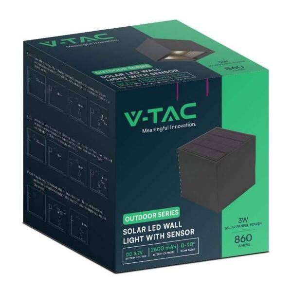 LAMPADA LED NERA CON PANNELLO SOLARE E SENSORE PIR 9W BIANCO NATURALE