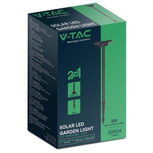 LAMPADA LED SOLARE CON PICCHETTO 2W LUCE 3IN1 NERA IP65 SENSORE CREPUSCOLARE